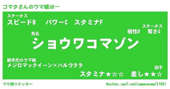 | ファンタジー風あだ名 | 『コマフェル』『エターナルコマター』 |