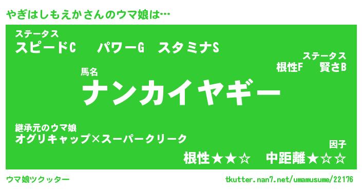 | ポケモン風あだ名 | 『ヤギチュウ』『ヤギハダネ』 |