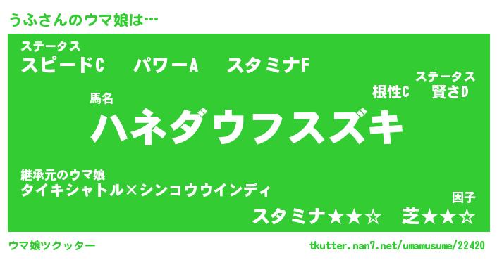 | ポケモン風あだ名 | 『ウフチュウ』『ウフダネ』『ヒウフ』 |
