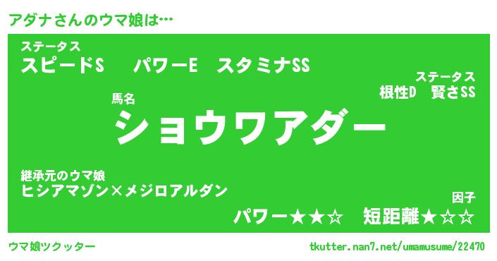 | 意味不明あだ名 | 『ペロリンアダナ』『アダナフォーエバー』 |
