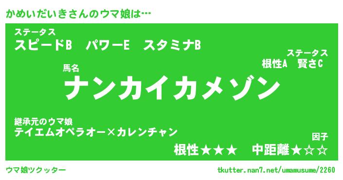 | ポケモン風あだ名 | 『カメチュウ』『カメイダネ』 |
