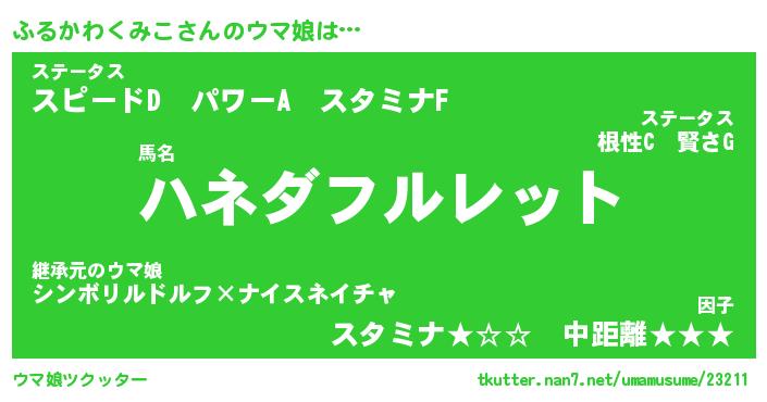 | 伝説のあだ名 | 『封印されしスナイパーふるかわくみこ』 |