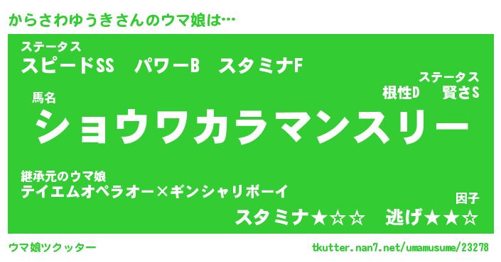 | ポケモン風あだ名 | 『カラチュウ』『カラサダネ』 |