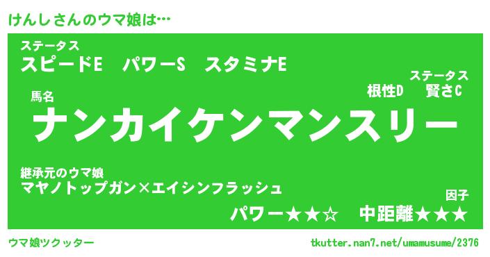 | ポケモン風あだ名 | 『ケンチュウ』『ケンシダネ』 |