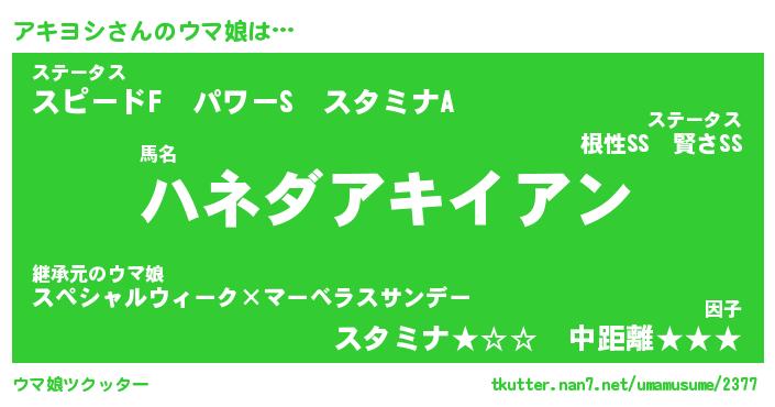 | 2回繰り返すあだ名 | 『アキアキ』『アアキキ』『うるうる』 |