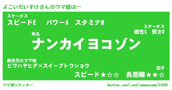 | 男性向けラノベタイトル風あだ名 | 『よこいだいすけの憂鬱』 |