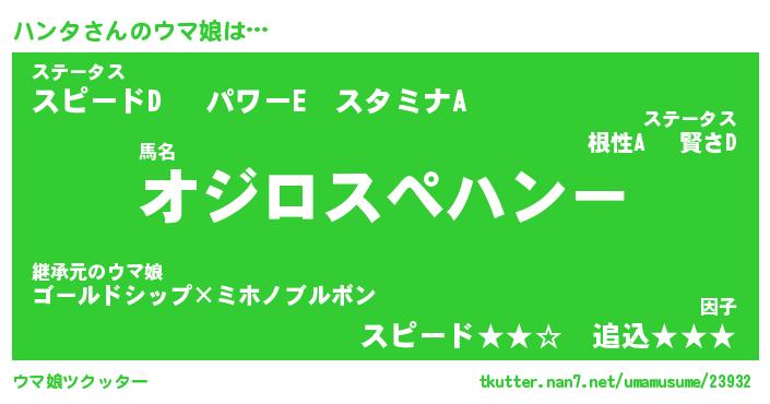 | ファンタジー風あだ名 | 『ハンフェル』『エターナルハンター』 |