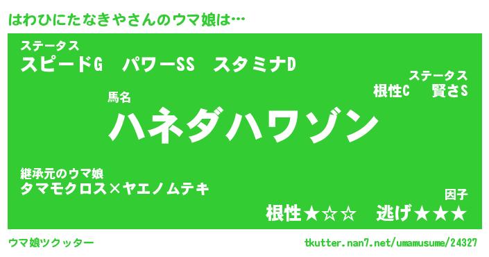 | ポケモン風あだ名 | 『ハワチュウ』『ハワヒダネ』 |