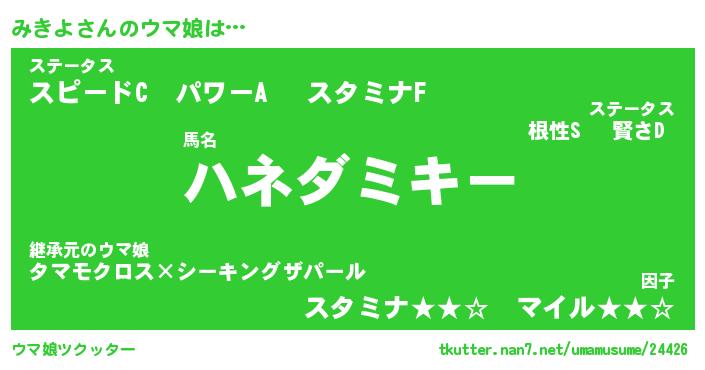 | ポケモン風あだ名 | 『ミキチュウ』『ミキヨダネ』 |