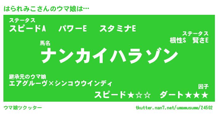 | ポケモン風あだ名 | 『ハラチュウ』『ハラレダネ』 |
