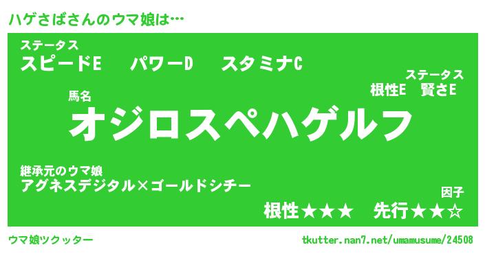 | ファンタジー風あだ名 | 『ハゲフェル』『エターナルハゲサバー』 |