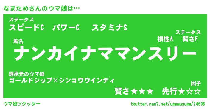 | ポケモン風あだ名 | 『ナマチュウ』『ナマタダネ』 |