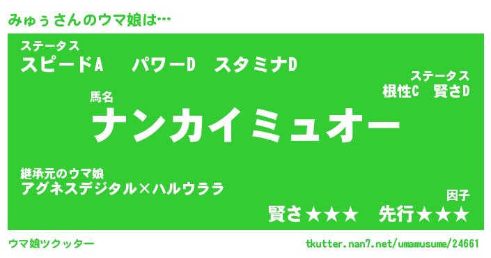 | ポケモン風あだ名 | 『ミュチュウ』『ミュゥダネ』 |