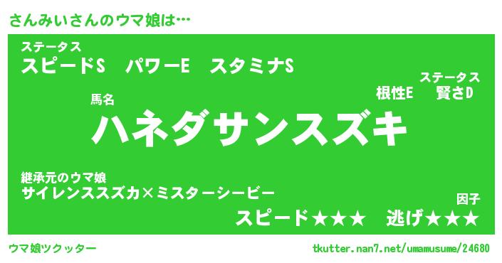| 欧米人風あだ名 | 『マイケルさんみい』『ウサインさんみい』 |