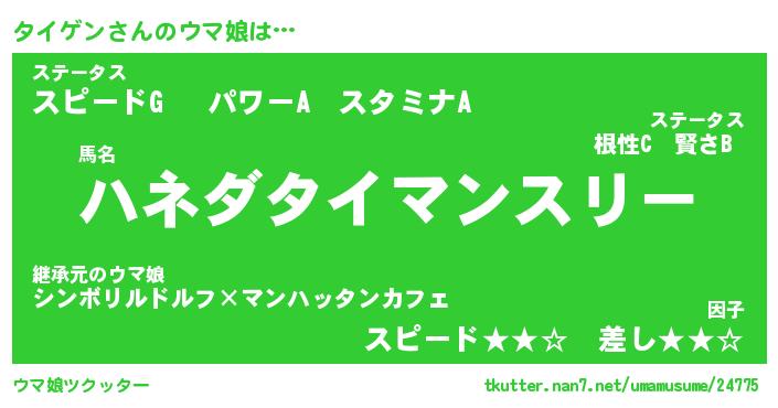 | ヒーロー風カッコイイあだ名 | 『スーパータイゲン』『天弓騎士タイ』 |