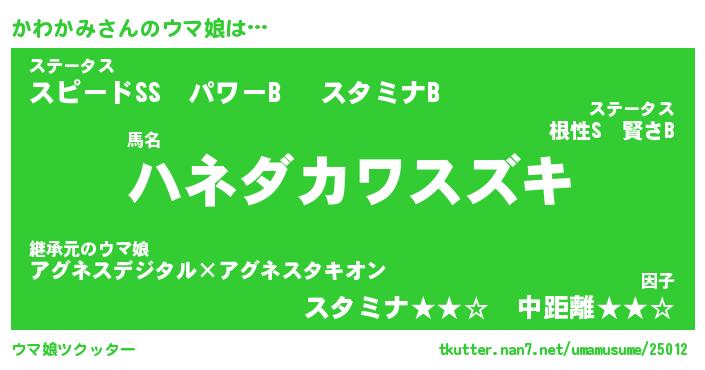 | ポケモン風あだ名 | 『カワチュウ』『カワカダネ』 |