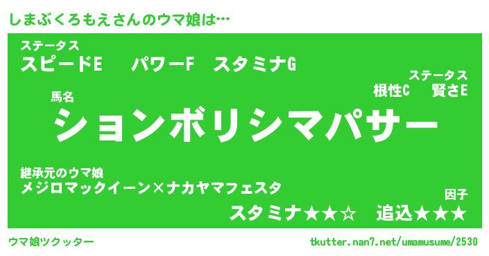 | 欧米人風あだ名 | 『マイケルしまぶくろもえ』 |