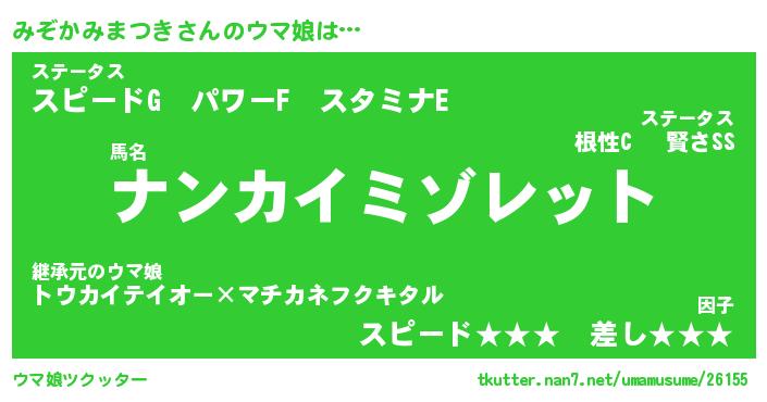 | 伝説のあだ名 | 『不死鳥のスナイパーみぞかみまつき』 |