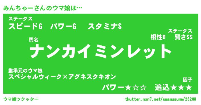 | ポケモン風あだ名 | 『ミンチュウ』『ミンチダネ』 |