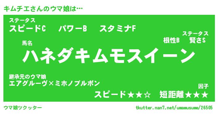 | ポケモン風あだ名 | 『キムチュウ』『キムチダネ』 |