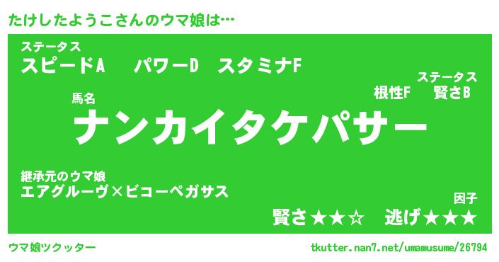 | 2回繰り返すあだ名 | 『たけたけ』『たたけけ』『ぷかぷか』 |