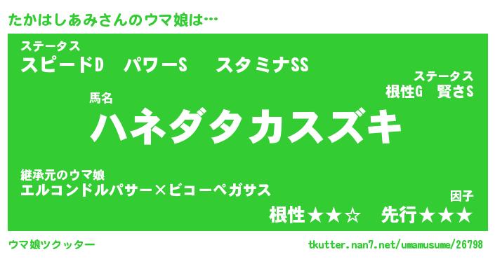 | ポケモン風あだ名 | 『タカチュウ』『タカハダネ』 |