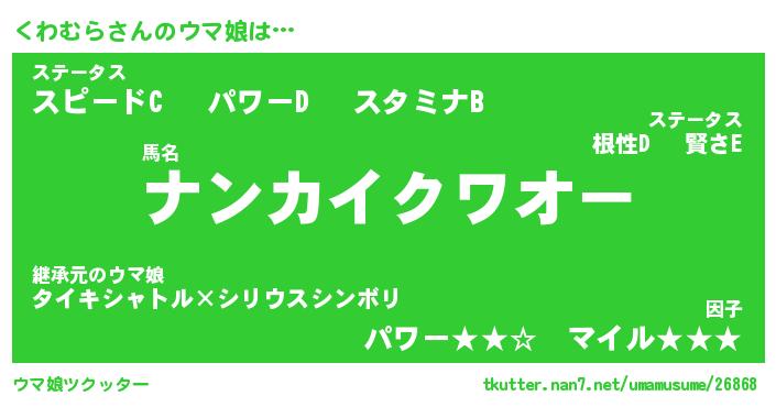 | ヒーロー風カッコイイあだ名 | 『スーパークワムラ』『黄金騎士クワ』 |