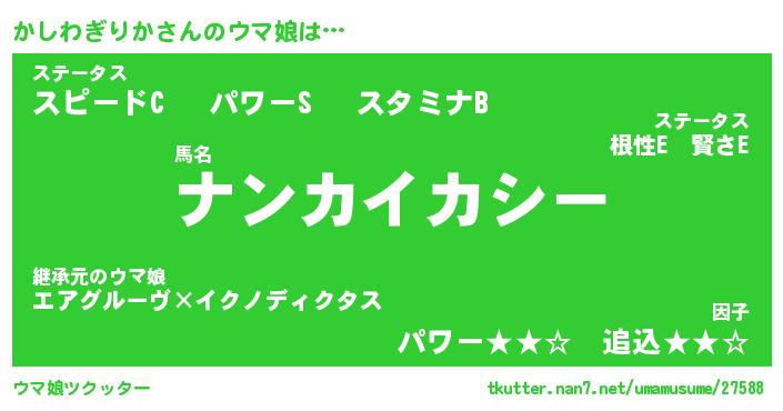 | ヒーロー風カッコイイあだ名 | 『スーパーカシワギリカ』『魔戒騎士カシ』 |