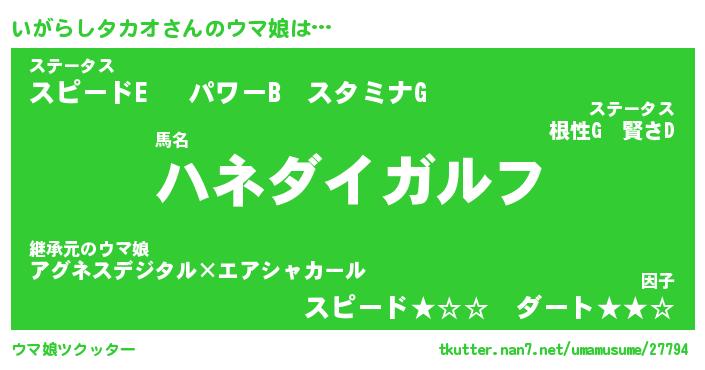 | 2回繰り返すあだ名 | 『いがいが』『いいがが』『ぬぷぬぷ』 |