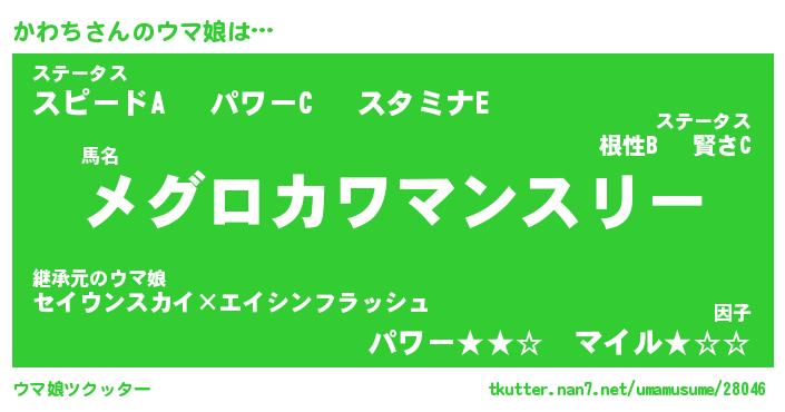 | ポケモン風あだ名 | 『カワチュウ』『カワチダネ』 |