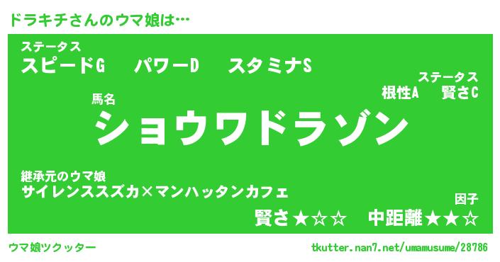 | 意味不明あだ名 | 『ペロリンドラキチ』『永久保存ドラキチ』 |