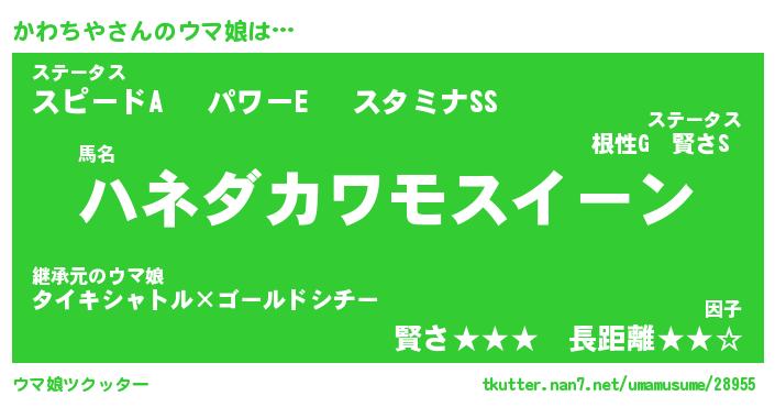 | 2回繰り返すあだ名 | 『かわかわ』『かかわわ』『うねうね』 |