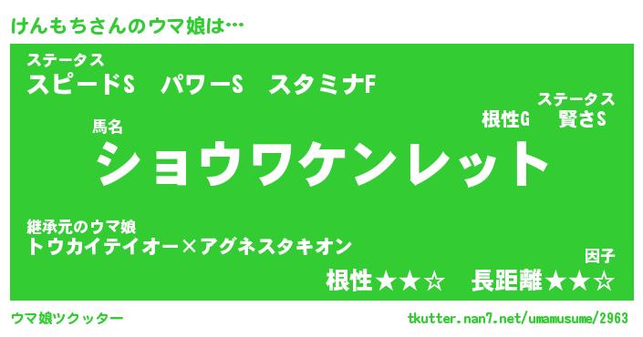 | ヒーロー風カッコイイあだ名 | 『スーパーケンモチ』『幻影騎士ケン』 |