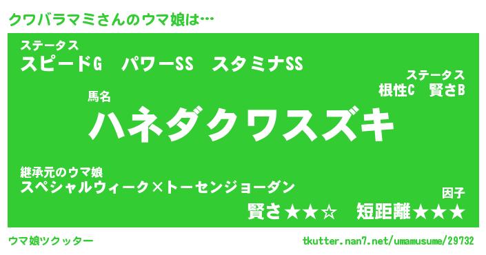 | ヒーロー風カッコイイあだ名 | 『スーパークワバラマミ』『黄金騎士クワ』 |