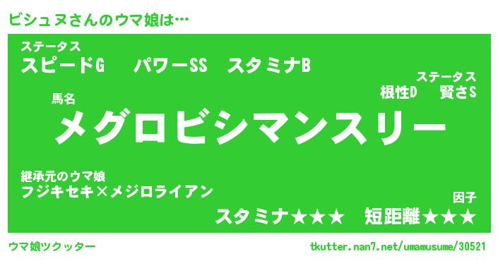 | ヒーロー風カッコイイあだ名 | 『スーパービシュヌ』『天弓騎士ビシ』 |