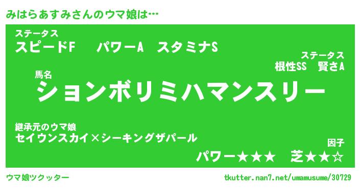 | 自動車の名前っぽいあだ名 | 『ミハティマ』『ミスラー』『ミンR』 |