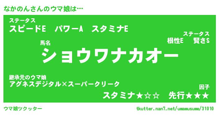 | 欧米人風あだ名 | 『マイケルなかのん』『ウサインなかのん』 |