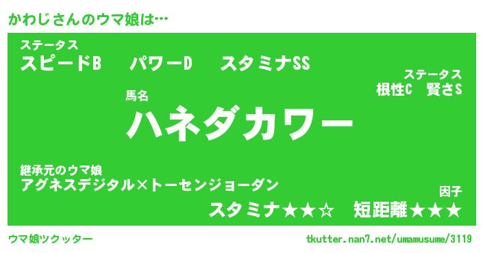 | ポケモン風あだ名 | 『カワチュウ』『カワジダネ』 |