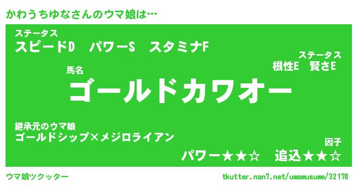 | ポケモン風あだ名 | 『カワチュウ』『カワウダネ』 |