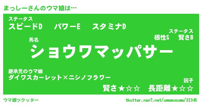 | 意味不明あだ名 | 『ペロリンまっしー』『永久保存まっしー』 |