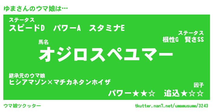 | ポケモン風あだ名 | 『ユマチュウ』『ユマダネ』『ヒユマ』 |