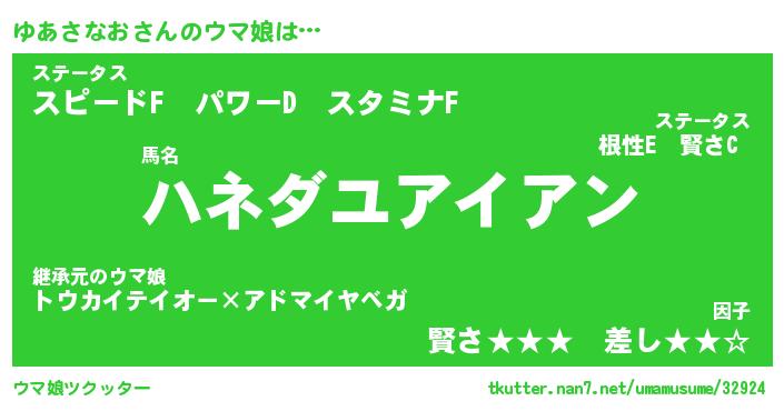 | ポケモン風あだ名 | 『ユアチュウ』『ユアサダネ』 |