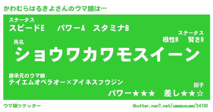 | ポケモン風あだ名 | 『カワチュウ』『カワムダネ』 |