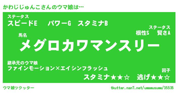 | ポケモン風あだ名 | 『カワチュウ』『カワジダネ』 |