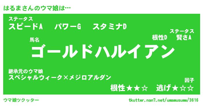 | ファンタジー風あだ名 | 『ハルフェル』『エターナルハルマー』 |