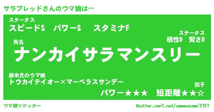 | ヒーロー風カッコイイあだ名 | 『スーパーサラブレッド』『黄金騎士サラ』 |