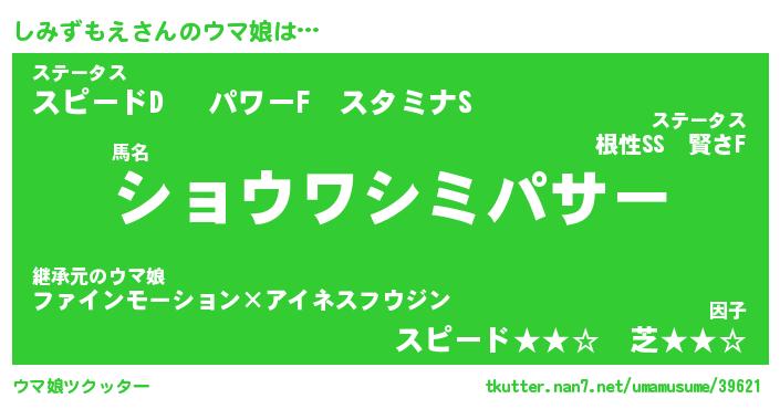 | ファンタジー風あだ名 | 『シミフェル』『エターナルシミズモエー』 |