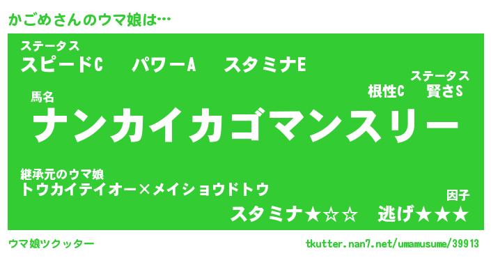 | ファンタジー風あだ名 | 『カゴフェル』『エターナルカゴメー』 |