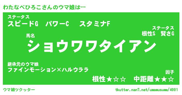 | 2回繰り返すあだ名 | 『わたわた』『わわたた』『いらいら』 |