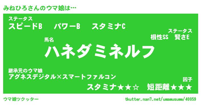 | ファンタジー風あだ名 | 『ミネフェル』『エターナルミネヒロー』 |